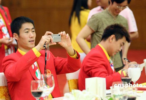 王勵勤、王皓參加北京奧運中國體育代表團慶祝宴會。 中新社發(fā) 廖文靜 攝