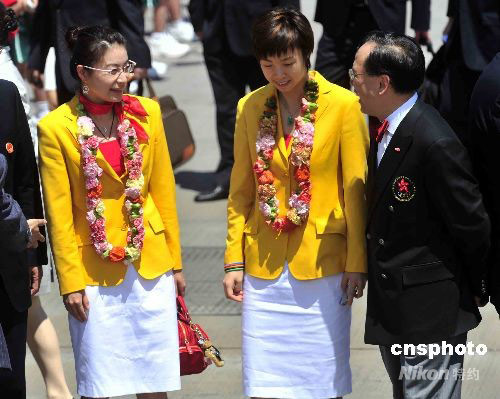 圖:郭晶晶張怡寧等奧運金牌運動員抵港