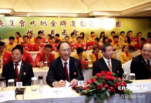 北京奧運(yùn)會金牌運(yùn)動員代表團(tuán)八月二十九日至三十一日訪問香港。八月二十九日下午代表團(tuán)抵達(dá)香港后舉行媒體見面會。中新社發(fā) 張勤 攝