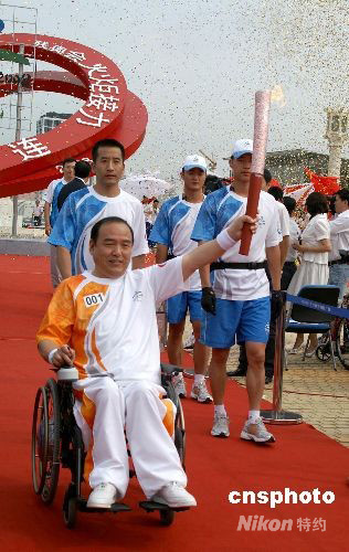 9月3日上午9時30分,以“超越、融合、共享”為主題和“點燃激情,奉獻關愛”為口號的北京殘奧會火炬,開始在中國北方美麗的海濱城市大連傳遞。大連市是北京殘奧會火炬“時代風采”路線傳遞的第五站,也是本條路線的最后一站。 中新社發 宋太盛 攝