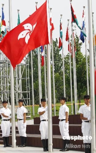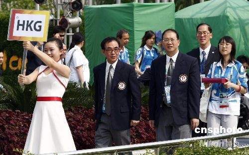 9月4日,香港代表團在北京殘奧村舉行升旗儀式。中新社發 盛佳鵬 攝