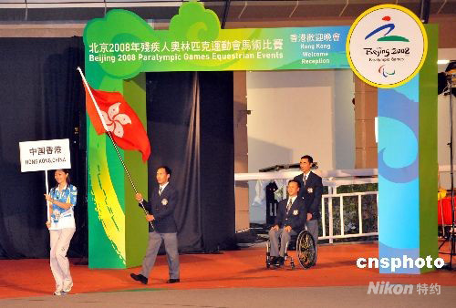 九月六日,北京二零零八年殘奧會馬術比賽開幕式在香港舉行歡迎晚會,香港殘奧馬術選手葉少康在運動員入場式上進場。中新社發 鄧慶樂 攝