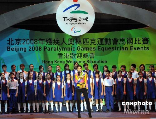 九月六日,北京二零零八年殘奧委會馬術比賽開幕式在香港舉行歡迎晚會,香港歌星陳慧琳與香港兒童合唱團獻唱為活動助興。中新社發 鄧慶樂 攝