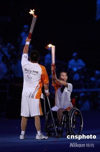 組圖:北京殘奧會開幕式上的火炬傳遞(2)