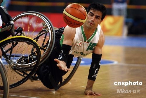 9月7日,北京殘奧會輪椅籃球首日比賽中,伊朗隊以73比62的比分戰勝南非隊。中新社發 杜洋 攝