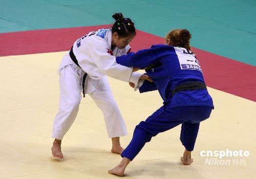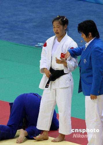 9月7日,在工人體育館舉行的殘奧會盲人柔道女子48公斤級比賽中,中國選手郭華平以絕對優勢戰勝了巴西選手卡拉·卡多佐,奪得金牌。中新社發 王韶驊 攝