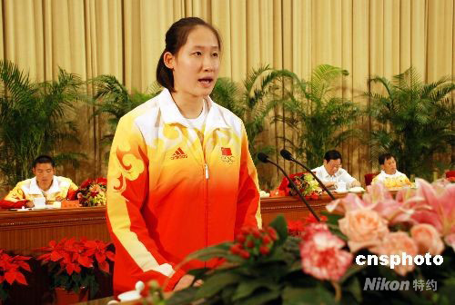 圖:奧運會女子蝶泳冠軍劉子歌在報告會上發言