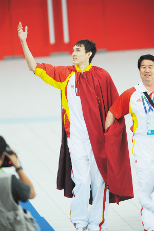 雖然最終收獲的還是“銀鑲玉”,但是楊博尊的心情已和8日晚有著天壤之別,臉上掛滿了笑容。“這雖然不是我的主項,但是我發揮得很好,超越了自己。現在我終于知道,‘水立方’不僅有‘金鑲玉’,還有更多的是超越。無論是我,還是我的隊友,我們都很努力,都在不斷地超越自己。”興奮的楊博尊披上了早就準備好的“戰袍”,這本是他為自己奪冠時準備的。