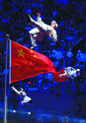 這個節目叫“寄往未來”,也是殘奧會閉幕式上難度最大、危險性最大的一個,為了完美的呈現出寄往未來的意境,來自河南少林塔溝武校的演員們已經練了1年多的時間。