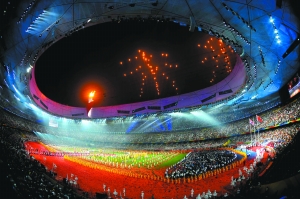“這是地球的天空中首次用焰火打出漢字。這個意味深長的結束語,預示著北京的金色未來,以及奧林匹克的美好前景!睋V北京奧運會、殘奧會開閉幕式視覺特效藝術總設計的蔡國強說。