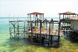 和永暑礁相比,華陽礁要小得多;和第二代高腳屋相比,現(xiàn)在的礁堡又氣派得多,堅固得多。看著殘存在礁堡旁的一座已經(jīng)坍塌的第二代高腳屋,我們不禁感慨萬千。歷史并未遠(yuǎn)去,它還在提示人們,當(dāng)年的創(chuàng)業(yè)是何等的艱辛,何等的不可思議!