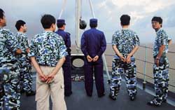 眼前的情景深深打動了我們。南沙衛(wèi)士的高尚與可敬,華陽礁官兵的勇敢與可愛,我們早有耳聞,但是百聞不如一見。當(dāng)然,比起他們經(jīng)歷過的大風(fēng)大浪和戰(zhàn)勝過的各種困難,這只是平平常常的一件小事,但它卻給我們上了一堂形象生動的人生奉獻(xiàn)課。