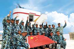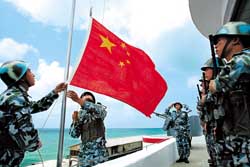 一面國旗,升華了守礁官兵的全部情感。平時,我們說到國家主權(quán)總是很抽象、很模糊,然而在南沙,主權(quán)、領(lǐng)土、國家利益這些概念,卻是那樣的具體和清晰。“今朝立業(yè)南沙,千秋有功國家”,這是南沙官兵最喜歡的口號。因?yàn)樗麄冎溃刈∧仙常褪鞘刈≈腥A民族的千秋基業(yè),就是守住子孫后代的發(fā)展空間!