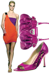 回顧上世紀80年代的時尚潮流,自由、開放、眼花繚亂、略帶點頹廢,最明顯的標志莫過于色彩的沖撞。那個年代幾乎將所有的色彩都聚在了一起,對比色、跳躍色、熒光色等。總之,那些純度偏高的色彩總是能給人帶來視覺刺激的愉悅和個人感情釋放的快感。于是,有了Isabella Fiore的“Love”綠色挎包;L.A.M.B的橙色和綠色拼合運動茄克;Marc Jacob的黃色露趾平底鞋;Nike的多色相拼運動連衣裙;Sonia Rykiel的黑白對比色視幻大手鐲……