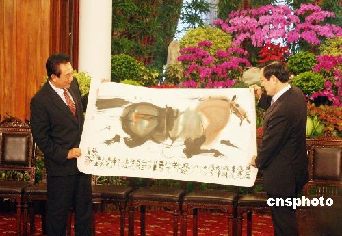 ·圖:陳云林向馬英九贈送畫作《駿馬圖》