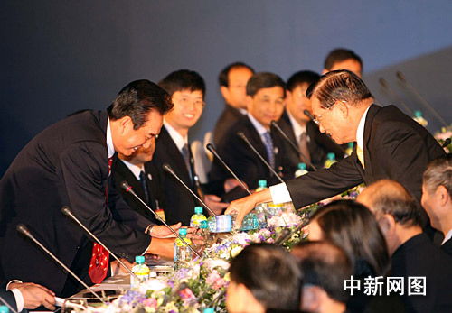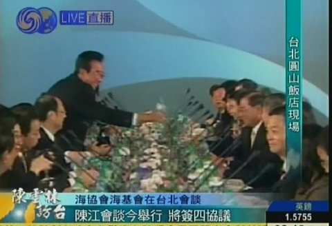 ·圖:會談間隙陳云林江丙坤互相倒水顯溫情