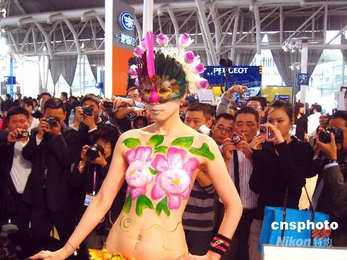 ·圖:人體彩繪車模亮相南京車展
