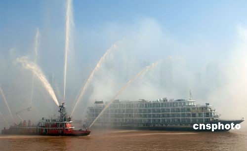 ·圖:重慶舉行內河旅游客輪火災撲救演習