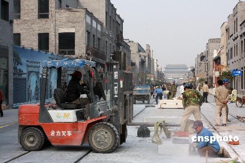 ·圖:前門大街進(jìn)行路面保養(yǎng) 靜候"鐺鐺車"