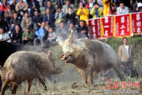 ·圖:貴州苗族舉行斗牛斗豬賽歡度苗年