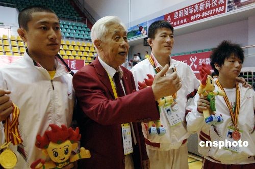 ·圖:女裁判成農運會男子摔跤場一道風景線