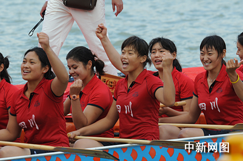 ·組圖:農(nóng)運會龍舟競速 四川女隊笑容燦爛