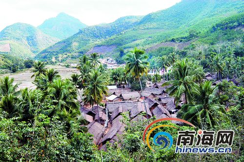 洪水村全貌,這片完整的傳統黎族民居村落被列入昌江茅草屋保護計劃。