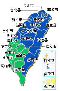 藍綠執政縣市分布圖