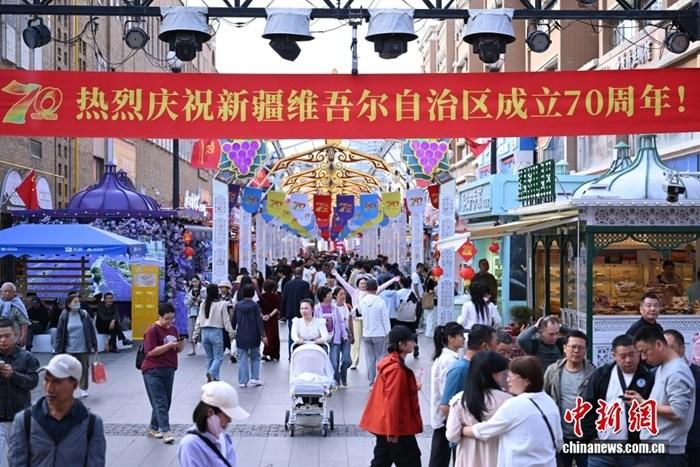 (砥礪奮進七十載 天山南北譜華章)烏魯木齊和田二街夜市吸引游客