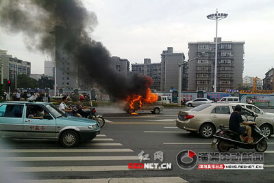 6月29日上午11時,一輛白色小貨車行至株洲市紅旗廣場南口時,突然熄火,無法發動。