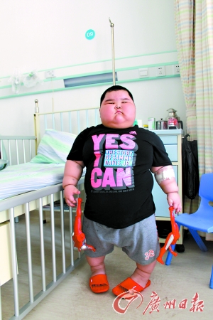 昨日,父母專程將小豪帶到了廣州一家醫院檢查,醫生卻沒有查出小豪的身體有任何病癥。小豪的父親盧先生說,他真希望有人能幫小豪減減肥。
