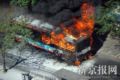 中新網(wǎng)北京7月6日電 (記者 杜燕)北京一輛載有20余名乘客的公交車,于6日早突然起火,幸無(wú)人員傷亡。據(jù)稱,由于高溫天氣致油管局部出現(xiàn)火情,造成車輛自燃。