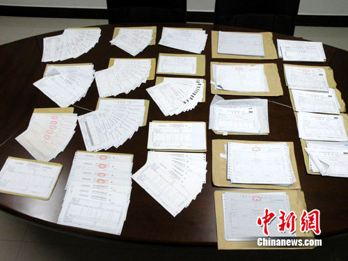 中新網(wǎng)杭州7月9日電(記者 趙曄嬌 實(shí)習(xí)生 吳顯 通訊員 趙錚 張成)今天,杭州市公安局濱江分局發(fā)布消息稱,通過(guò)一張“代開(kāi)發(fā)票”的名片提供的線索,浙江省杭州市公安局濱江分局日前成功破獲了一起涉案金額巨大的非法出售發(fā)票案。主犯韓某等4名犯罪嫌疑人被刑事拘留,現(xiàn)場(chǎng)收繳14種發(fā)票共計(jì)3萬(wàn)2千余份,繳獲各類私刻公章115枚及大量打印機(jī)、電腦等制作假發(fā)票工具。