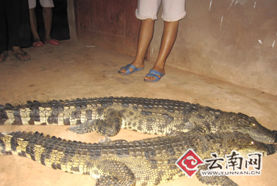 據西雙版納自然保護區勐臘派出所的所長代旭介紹,他們趕到現場后,發現這兩條兩米多長的大鱷魚正趴在李明周的家中,沒有人敢靠近。檢查后也沒有什么外傷,便將其帶回派出所暫時看管。但是,兩條鱷魚是不是中國原產鱷魚,為什么會出現在小磨公路的隧道中?警方表示還在調查。