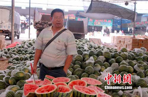 一位從陜西販運西瓜到重慶的商販告訴記者,因為攤位倉庫被淹,他們沒了賣瓜的地方,一卡車的西瓜面臨積壓,昨日甚至還有一些瓜販將西瓜擺到公路上“大甩賣”。一位宮姓商販憂心忡忡地告訴記者,受洪峰淹沒攤位影響,加之最近兩天當地天氣陰雨伴隨降溫,他的西瓜已從7角錢一斤降到5毛。(完)