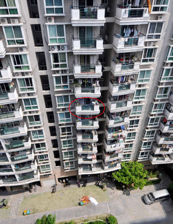 住在小區(qū)2號樓的老王目擊了整個過程。“他當時半蹲著,雙手緊抓著陽臺護欄,雙腳踩在陽臺外側的邊沿上。”老王一邊模仿男子當時的姿勢,一邊說,“他嘴里一直在喊救命,小區(qū)門口的保安聽到后趕緊往那邊跑,我也趕過去想幫助救人。保安剛到樓下,那小伙子的左腳突然滑下來,他往上蹬了幾下,沒蹬上去,右腳也跟著滑了下來,僅靠雙手抓住護欄。沒幾秒鐘,人就摔了下來。”