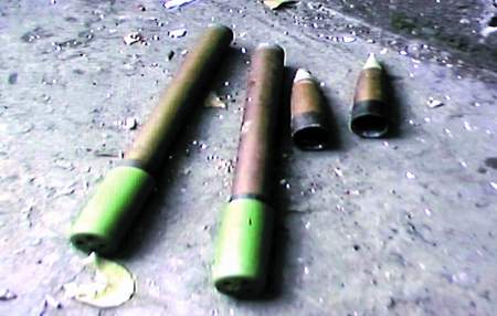 正在這時,劇組那名工作人員發現了異樣。在一個堆著啤酒瓶、廢紙的地方,有4根鐵的條狀物很是怪異:長的2根有1尺多長,一頭是綠色的,一頭是棕色的;另外2根很短,是圓錐體,尖上是白色的,身體是棕色的,尾部又是黑色的!鞍⊙剑@里有火箭彈!”這員工一聲喊,把周圍的人嚇了一大跳。