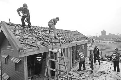 工人在拆除違建鴿舍。