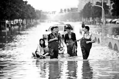 救災(zāi)辦工作人員告訴北青報(bào)記者,救災(zāi)物資現(xiàn)在還比較充裕,前天剛接收了7000箱礦泉水,運(yùn)輸問題成為難點(diǎn)。很多道路不暢通,一部分是因?yàn)榉e水過多,一部分因避災(zāi)車輛、拋錨的故障車阻塞立交橋,車輛無人認(rèn)領(lǐng)。對(duì)這種車輛,首先從交警處聯(lián)系車主,實(shí)在沒有辦法的用拖車拖到路邊。另外,部分受災(zāi)區(qū)域積水深度也很尷尬,“70厘米的水深,沖鋒舟、皮劃艇都駛?cè)氩涣耍俗哌M(jìn)去又全都濕透。”