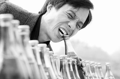 但是,胡耀輝果真名不虛傳,除了咬到40瓶時面部開始有用勁的表現(xiàn),到一分鐘結(jié)束時他共咬開41瓶。胡耀輝的鄰居不信,連咬了2瓶牙就開始酸了。