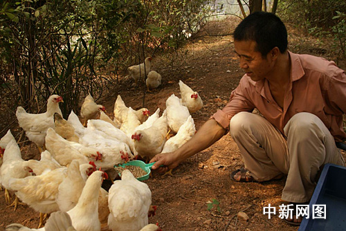 聽說今年50歲的四川人況奇成在南海丹灶仙湖度假區租了一塊山林地,養了5000多只專吃蠅蛆的雞,記者一行驅車前往探究了一番。