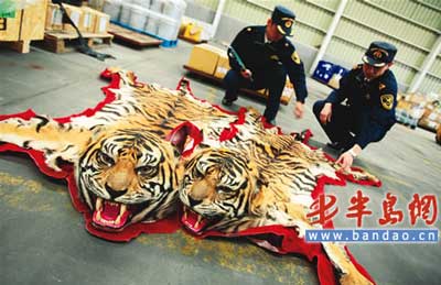 得到線索后,海關緝私部門立即趕赴煙臺,到黃某的暫住地進行搜查,執法人員共搜出虎皮一張,虎鞭、虎膽、虎牙制品各一件,虎骨若干。加上執法人員9月21日查扣的那張虎皮,涉案總額達100萬元。同時,執法人員將另一名涉案的中國籍犯罪嫌疑人抓獲。