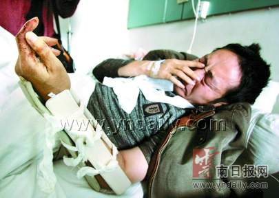記者看到李君鐘時(shí),他正準(zhǔn)備做手術(shù),主治醫(yī)生告訴記者,李君鐘多處軟組織挫傷,頭部受傷縫了7針,左臂骨折,傷情跡象表明,肯定是嚴(yán)重的外力所致。“我怎么這么倒霉啊!因?yàn)檎也坏阶约旱能嚕桶ち艘活D打!”說起當(dāng)晚的情形,李君鐘忍不住淚流滿面,他說,當(dāng)晚,因?yàn)楹团笥讯嗪攘藥妆浀米约旱能囃T阱\苑花園小區(qū)門口,但可能是喝多了,到門口一看,卻怎么也找不著車了,難道車被偷了?他趕緊四處找車,不知不覺就進(jìn)了小區(qū)。剛進(jìn)小區(qū),突然有幾名保安跑過來,二話沒說就開始打他……