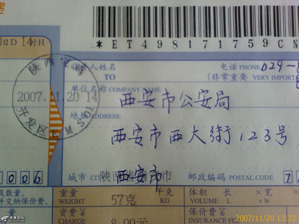 寶雞律師“剛正”向西安市公安局通過特快專遞提交了舉報材料,圖為“剛正”律師所拍特快轉遞照片 (圖片來自華商論壇)