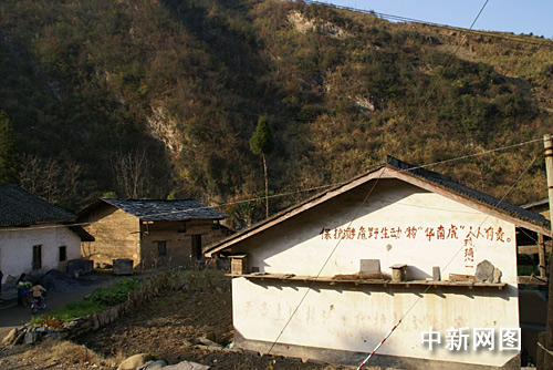 記者一行到達鎮坪縣曾家鄉時,發現公路邊一家玻璃廠的外墻寫著“保護瀕危野生動物‘華南虎’人人有責”的標語,這是記者在鎮坪縣發現的唯一一條保護華南虎的標語。