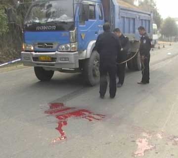 當(dāng)日上午10時(shí)15分,一輛牌照為鄂LA5577的中型自卸車滿載一車河砂向執(zhí)勤點(diǎn)駛來,副中隊(duì)長方聲白即上前打手勢,指揮車輛靠邊停車。當(dāng)該車剛停穩(wěn)接受檢查時(shí),一輛牌照為鄂L14043的中型自卸貨車滿載一車河砂,從洪港方向快速駛向方聲白,瞬間將方聲白撞倒。貨車前左輪輾壓著方聲白襠部向前推行,公路上當(dāng)即留下一條26.2米長的血肉拖痕。