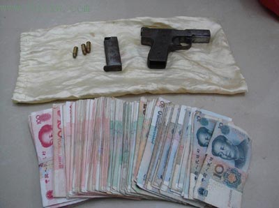 驚險的抓捕現場,發生在安溪城關東大路某私租房內,嫌犯胡某安就暫住在這里。行動開始前這里已被警方重兵包圍,當民警踢開房門后,4個手持微沖的民警就用槍口直抵胡某安,迫其束手就擒。胡某安放在枕頭下的手槍,為仿“六四”式,當時槍已上膛,內裝3發子彈。民警還從出租房內搜獲千斤頂、電子秤等制毒工具。