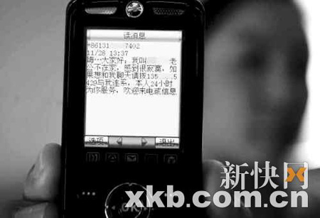 “這也許是目前最可以解決問題的方法了。”郭小姐告訴記者,丈夫性格內向,早就勸其放棄這份工作。為了維護這段已經7年的婚姻,郭小姐希望通過換工作的方法擺脫被短信騷擾之苦。之前她曾報警,但公安并未予以立案處理。