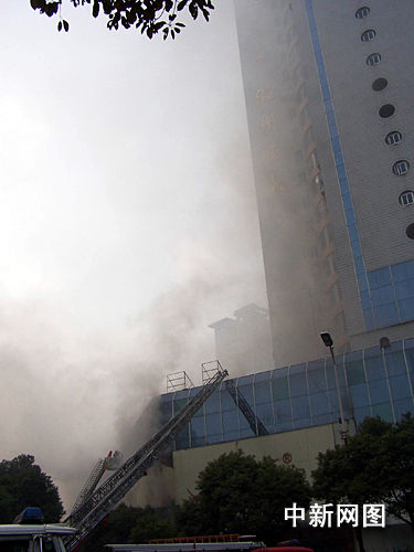 大廈的北面和西面各有消防車架起云梯不停往外搭就人員,一位被解救下來的年輕女子楊小姐,手拿濕毛巾,雙眼通紅,不時咳嗽道:“我被困了兩個小時,從六樓被他們(消防戰(zhàn)士)救下來,里面煙很大。”還有一些家屬在樓上的居民,正焦急的向消防人員反應樓內(nèi)人員的狀況,大廈的入口處,還有消防人員背著氧氣瓶隨時待命準備進入火場營救被困居民。