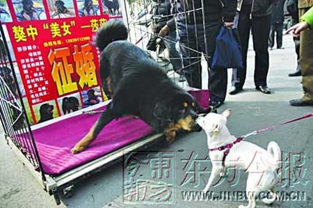焦作市有一愛狗的市民,為了給自己的藏獒尋覓到一個(gè)“如意郎君”,下足了工夫,不但專門請(qǐng)人為愛犬拍了許多寫真集、制作了大幅宣傳畫,還在征婚現(xiàn)場(chǎng)為愛犬鋪上了紅地毯,這只母藏獒享受的級(jí)別那是相當(dāng)高。